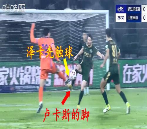 VAR没看清中超慢镜头显示:山东泰山被漏判点球,泽卡先踢到球
