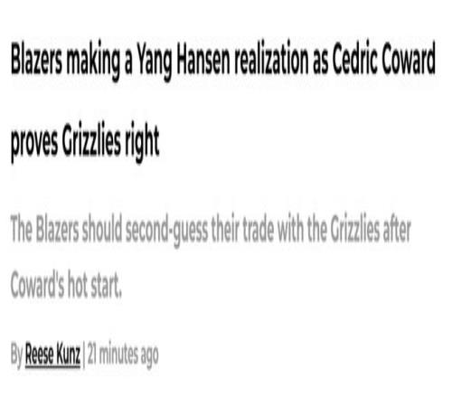 北京时间10月26日,灰熊11号秀考沃德的爆发,让波特兰的一些媒体讨论起杨瀚森来。毕竟,考沃德正是开拓者换来杨瀚森那笔交易的筹码。开拓者队记Reese Kunz点评如下——