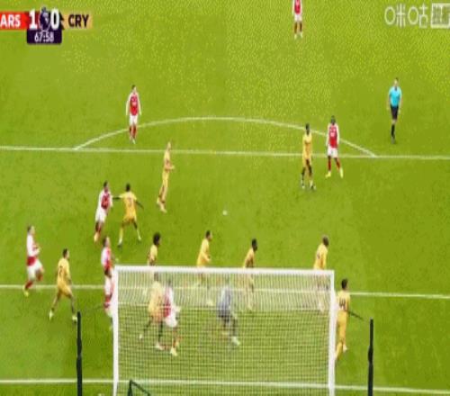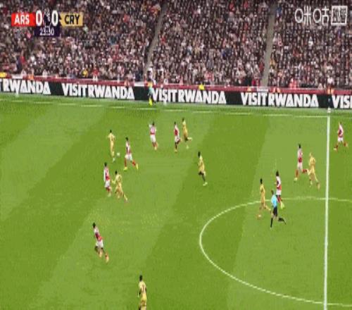 第39分钟,阿森纳前场任意球机会,赖斯主罚送入禁区,埃泽抢到第二落点,二踢脚凌空爆射,攻破老东家球门,阿森纳1-0水晶宫。
